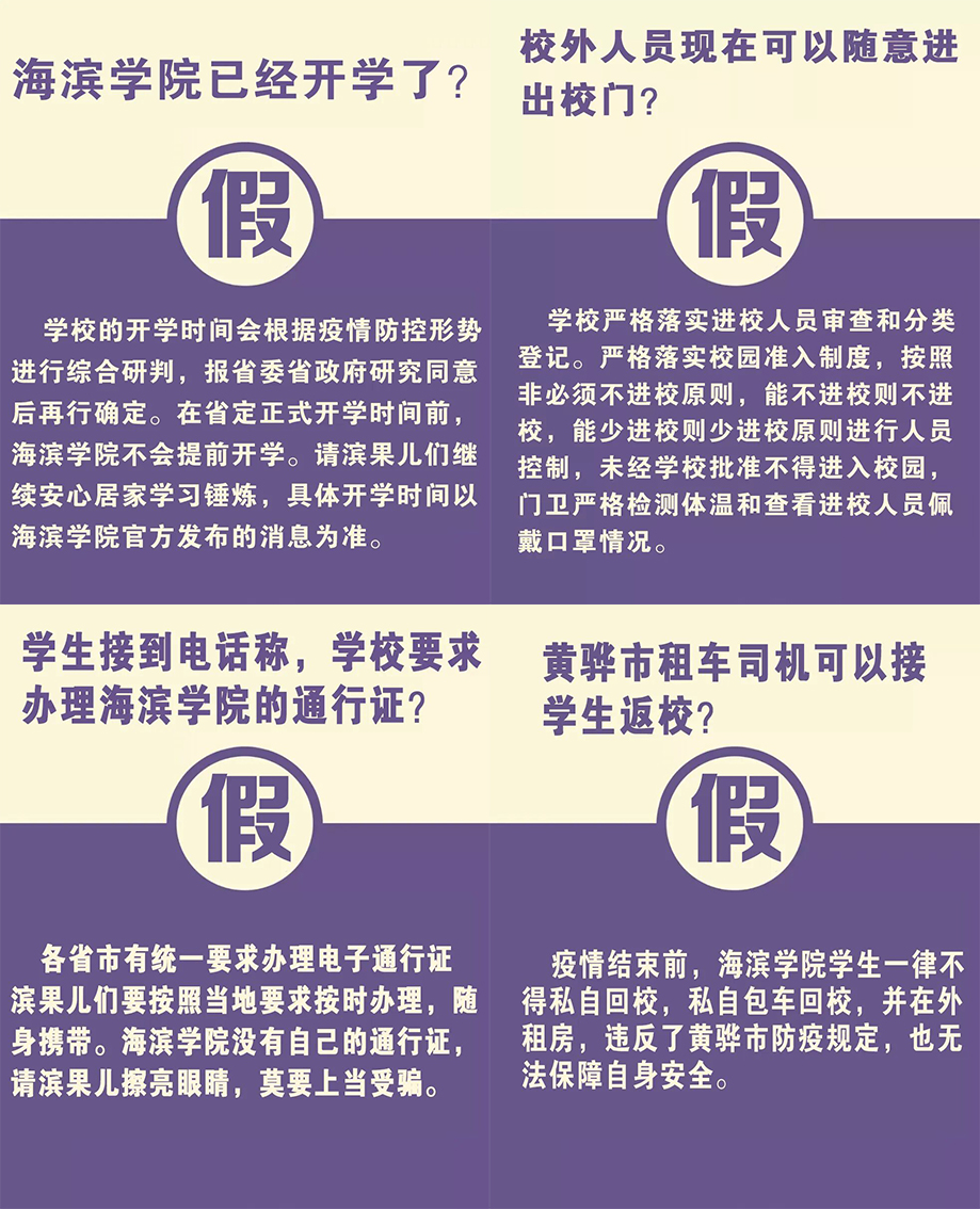 近日,有人在网上发布关于我校不实传言:我校已经开学?已经可以随意进出校园?针对我校出现的不实信息,在此作出以下声明: