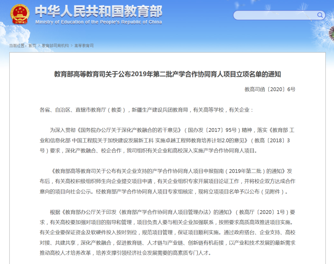 (教育部2019年产学合作协同育人项目通知)