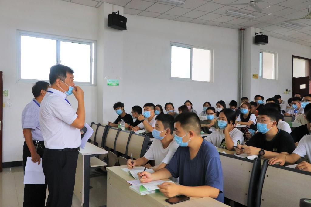 9月7日,我校迎来新学期开学第一天。为实现疫情防控条件下的新学期良好开局,校长王化深、党委书记魏旺强、副校长张长铎、副校长徐爱国、党委副书记魏炜、副校长赵金楼、校长助理邵晓康、校长助理吴立军等校级领导,教务处、学校办公室、人事处、学生处、教学督导办公室、资产设备管理处、后勤服务中心等单位的相关负责老师共36人分8个小组,于上午7点40分在知行楼A105集合召开了简短的秩序检查工作布置会后,对思源楼、知行楼、通方楼、实验楼共83个课堂的教学秩序进行了集中检查。同时,各教学单位领导、教师组织了单位内自查团队对本单位相关教师课堂进行了教学秩序及规范教学检查。