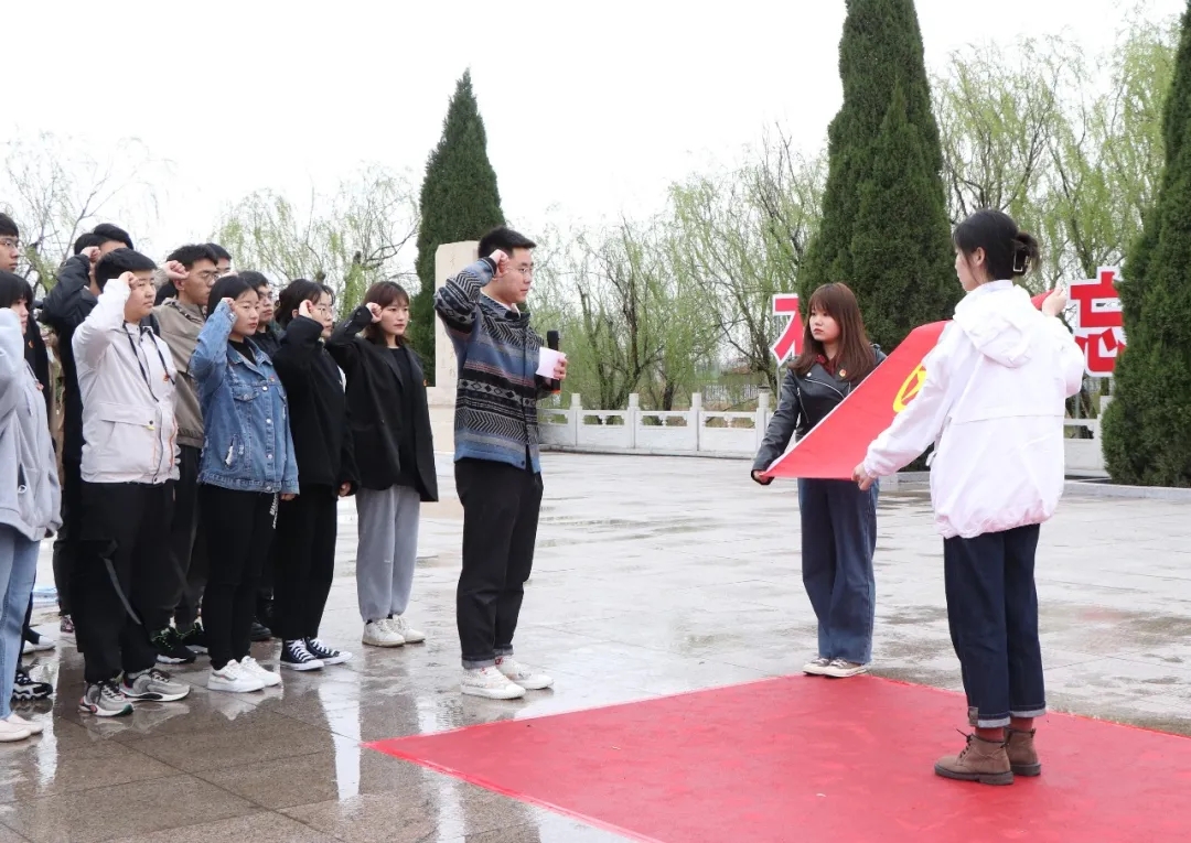 我校团委学生副书记贾鑫国带领大家重温入团誓词,回顾中国奋斗的历史,近距离感受革命先烈不屈不挠的斗争精神。
