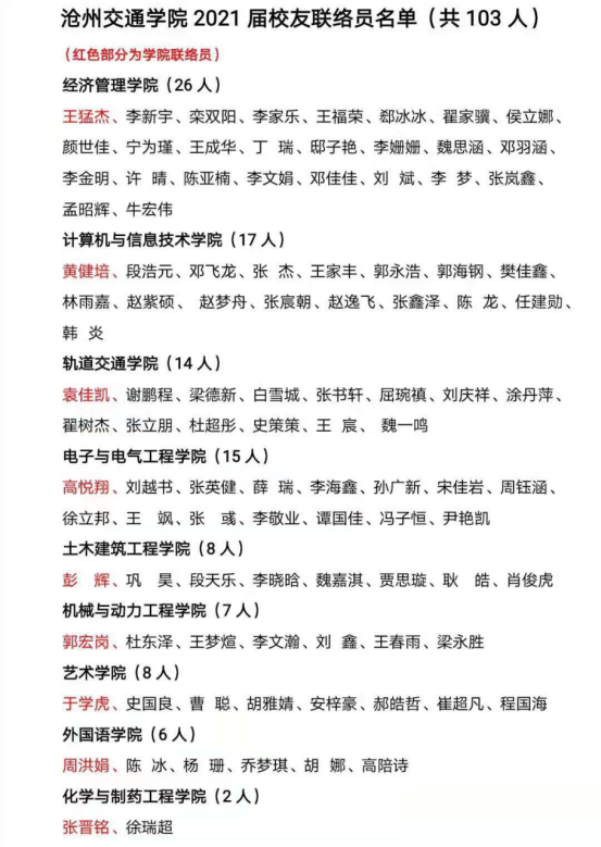 招生就业处处长张建新宣读了《关于聘任沧州交通学院2021届校友联络员的决定》。