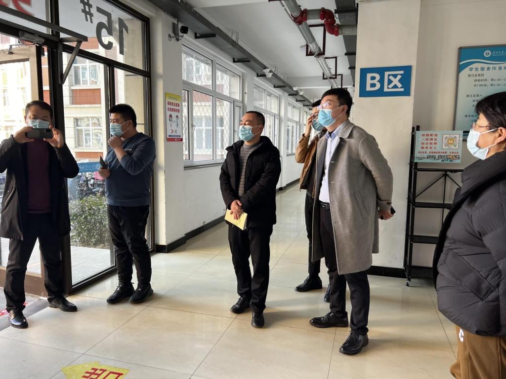 随后,黄骅市疫情防控办相继走访了我校防疫物资管理仓库、学生餐厅、学生公寓等地,详细听取了相关单位负责人关于防疫物资准备、卫生环境消杀、师生返校工作演练、用餐及购物管理、学生上下课管理、学生发热应急处置等各项工作的汇报,并就地贴标识等方面提出具体整改建议。
