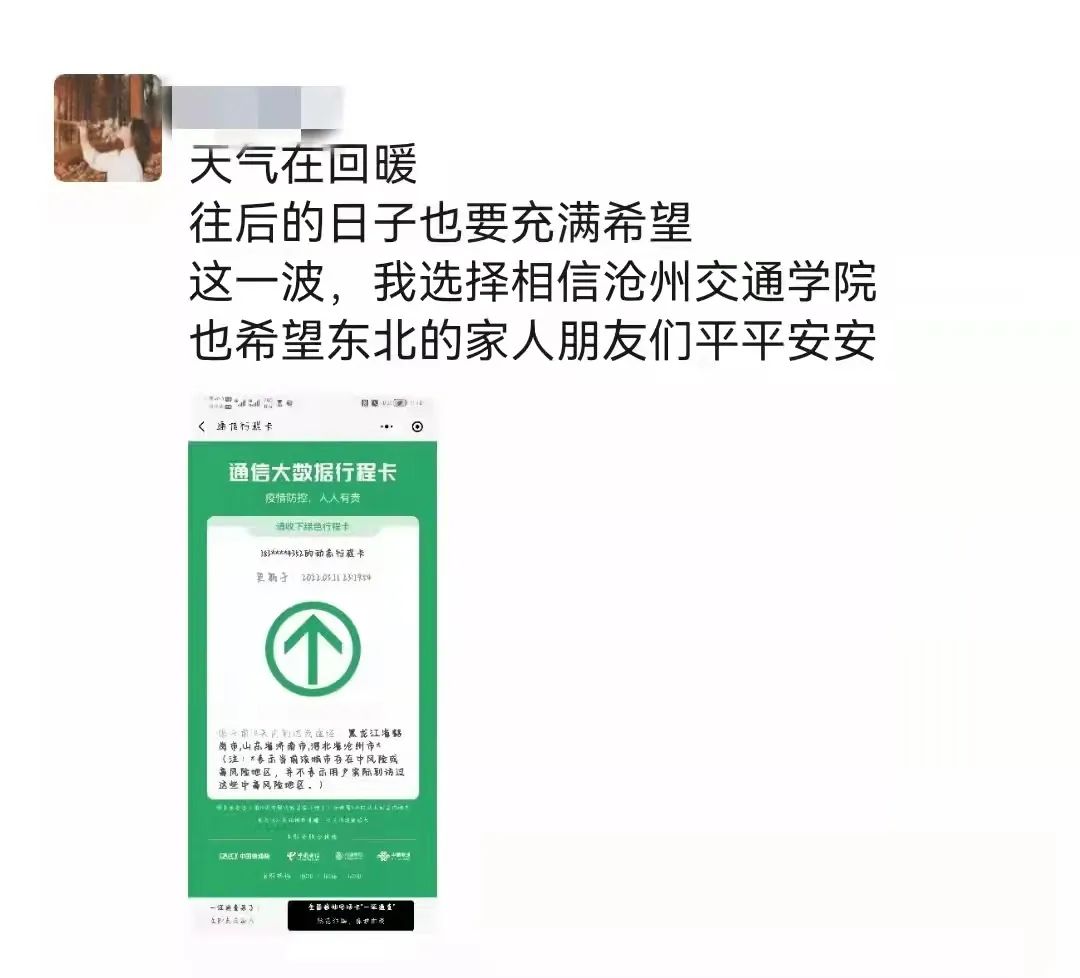 不必焦虑被疫情所占的青春,没有人规定青春的模样,我们可以在任何琐碎的日子里捕捉美好。低迷即将散去,美好正在发芽,在这草长莺飞的日子里,一定要相信,会有新的相逢将温暖延续,请放心将自己交给沧交,我校会在有条不紊的秩序中,重按春天播放键,抗击疫情,我们同在!