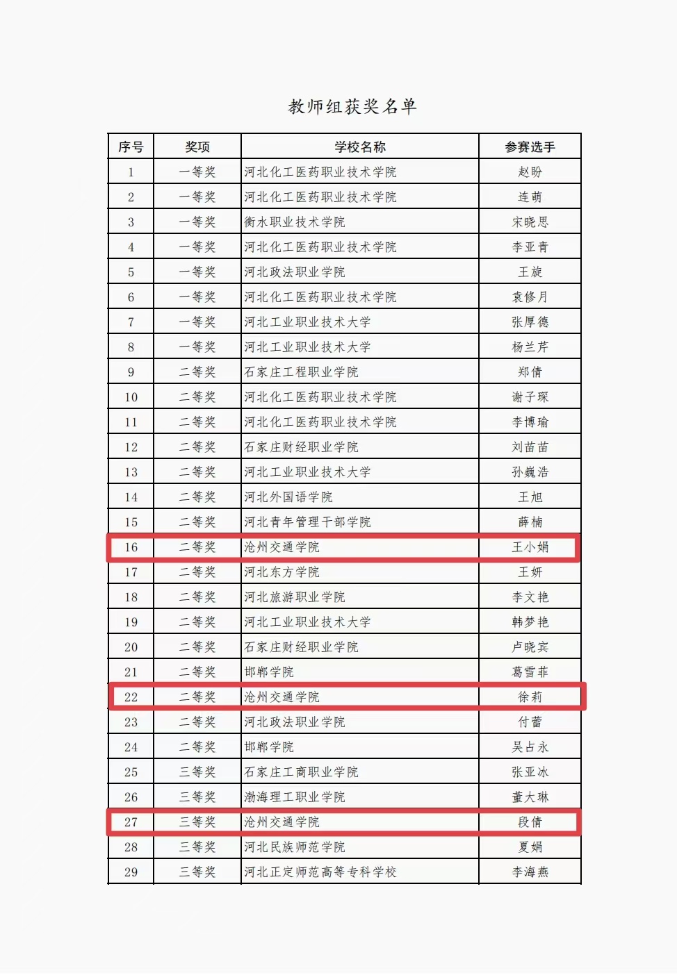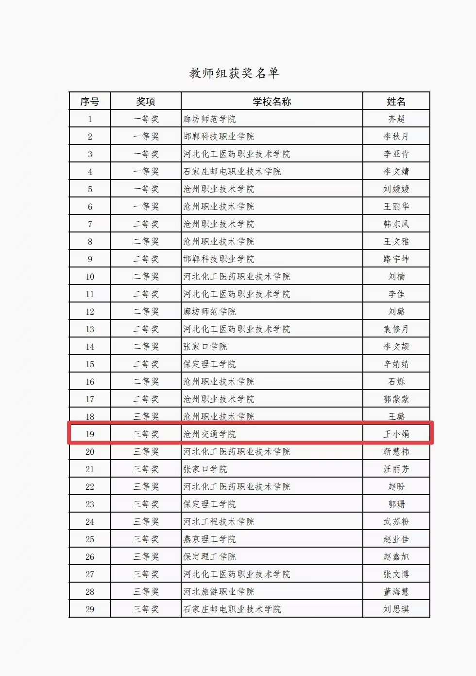 在财会职业能力赛项中获得本科组一等奖一项、三等奖一项;教师组二等奖两项、三等奖两项、优秀奖四项。