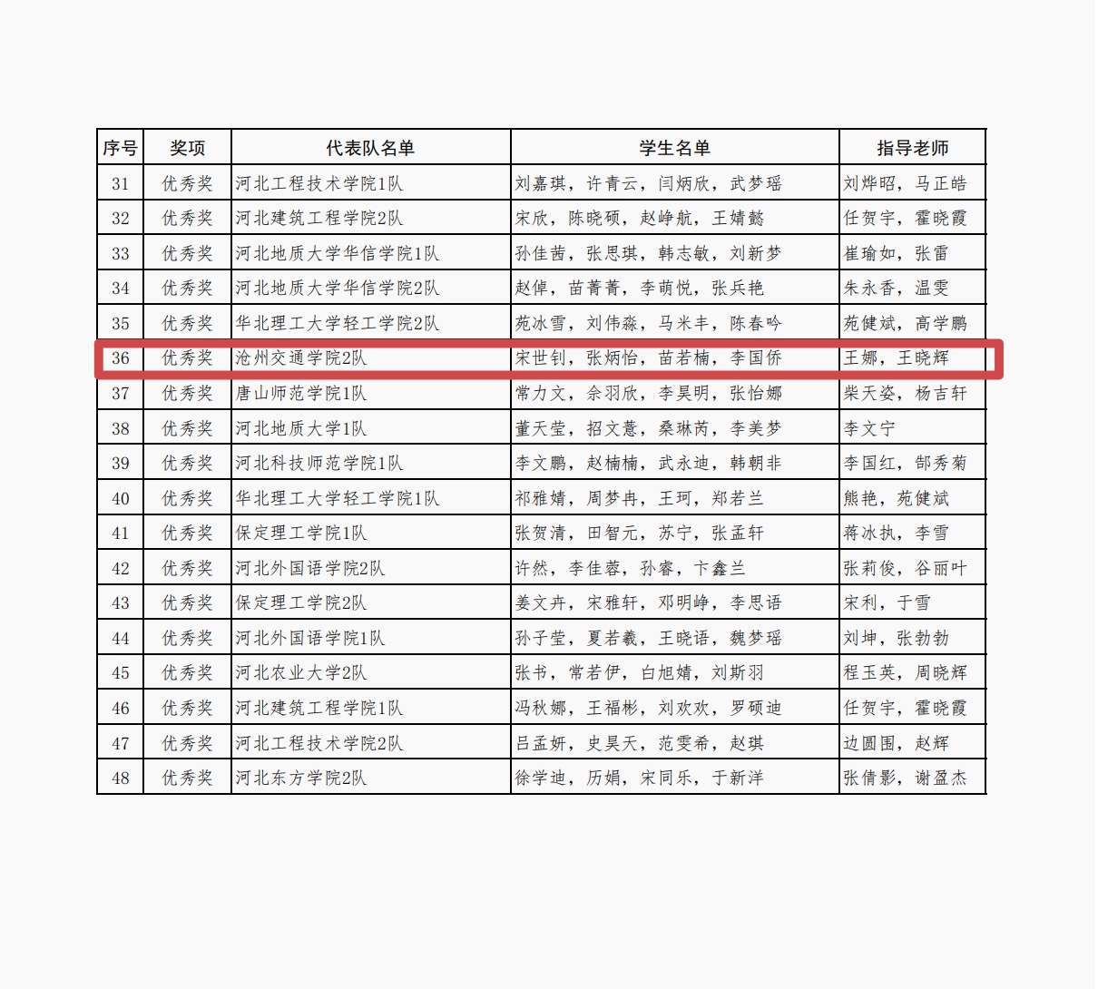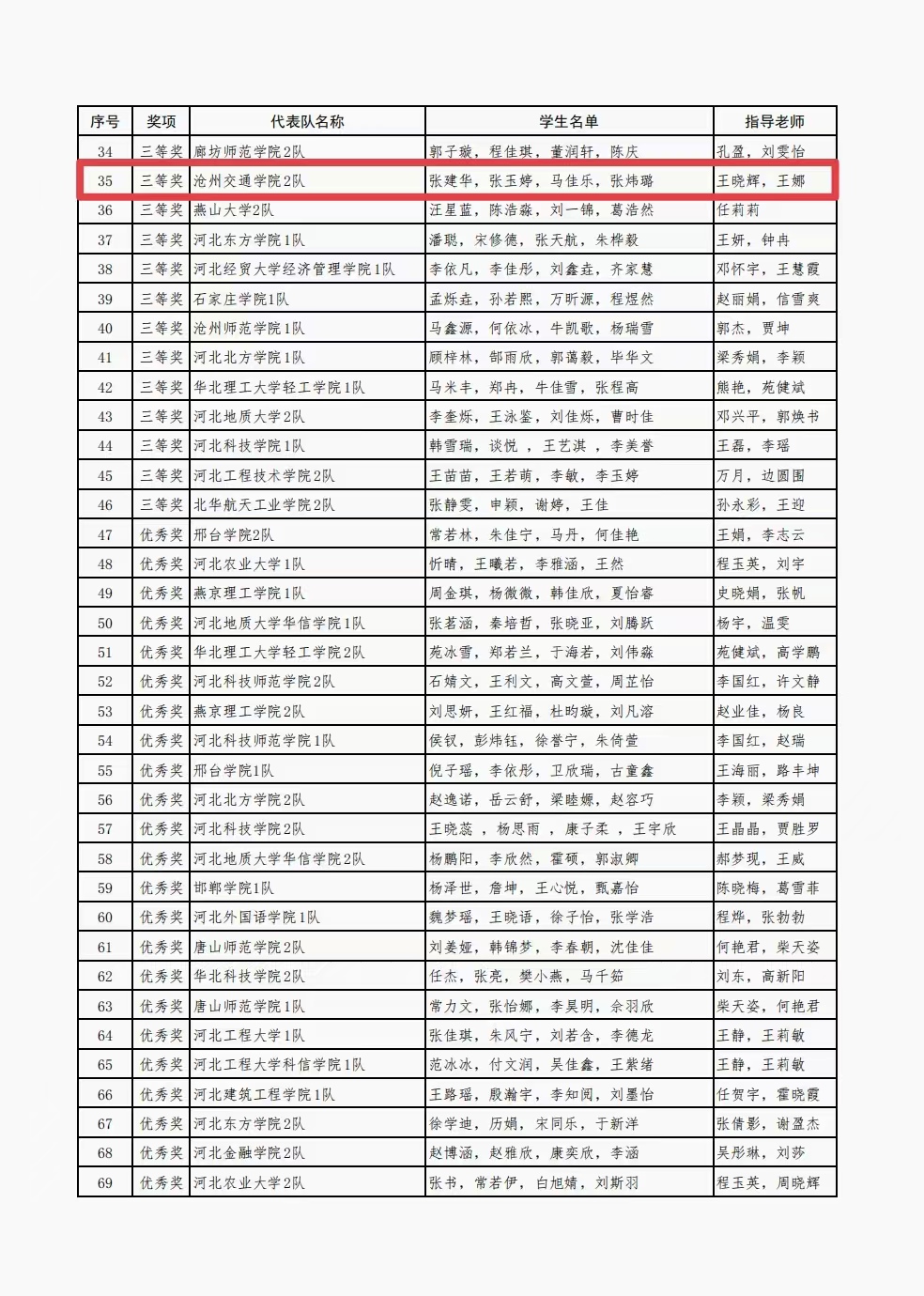 全国大学生数学建模竞赛(河北赛区)一直以来都是检验学生数学应用能力和团队协作能力的重要舞台,我校参赛团队在比赛中充分发挥了数学建模的专业优势,运用数学方法和计算机技术,成功解决了一个个复杂的实际问题。他们严谨的逻辑思维、高效的团队协作以及坚持不懈的精神,赢得了评委们的一致好评,荣获河北赛区二等奖。
