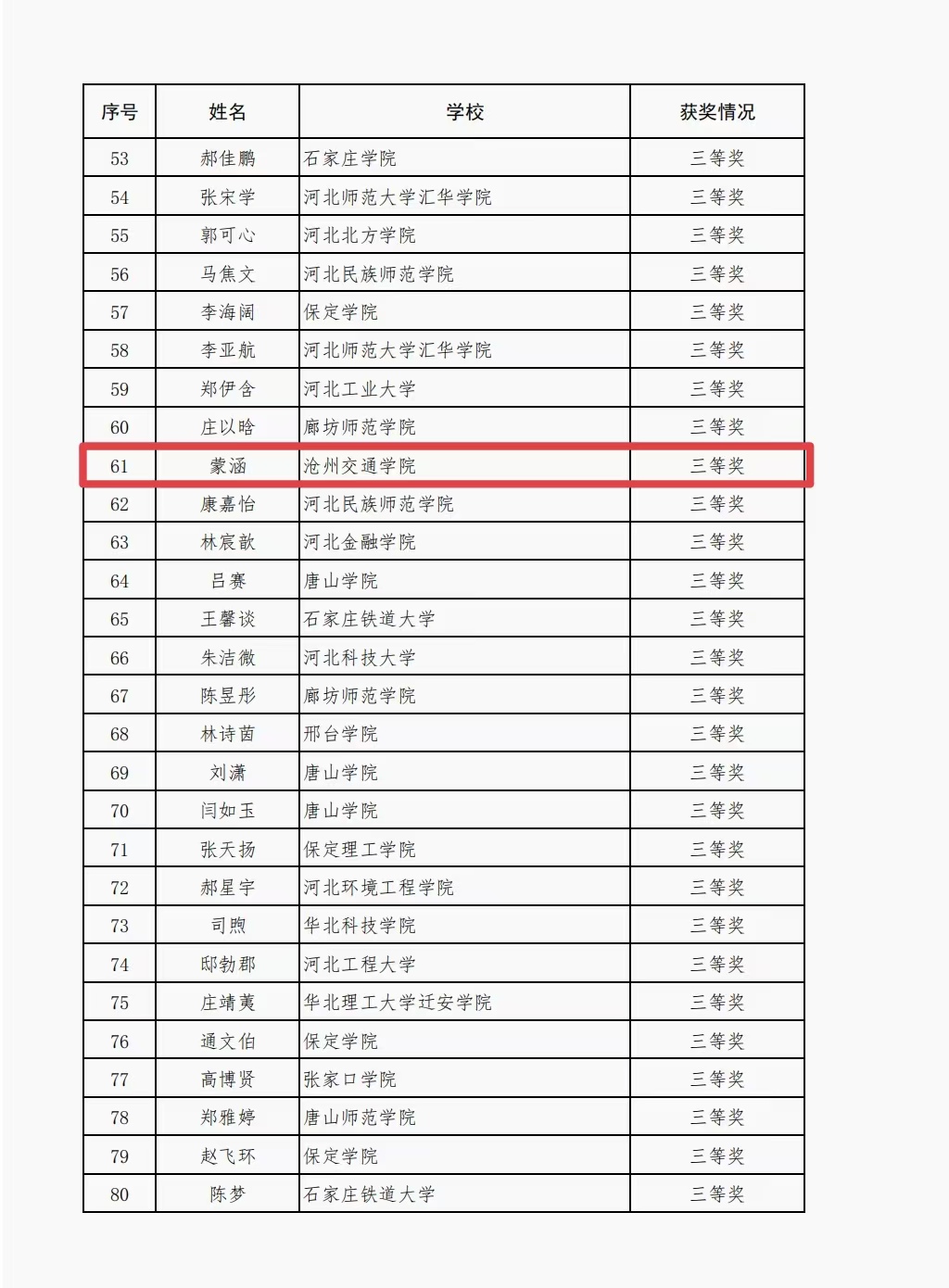 河北省大学生人文知识竞赛是一场对学生人文素养的全面考验,我校参赛学生凭借深厚的文化底蕴、广博的知识储备以及出色的现场表现,最终荣获个人赛三等奖一项。