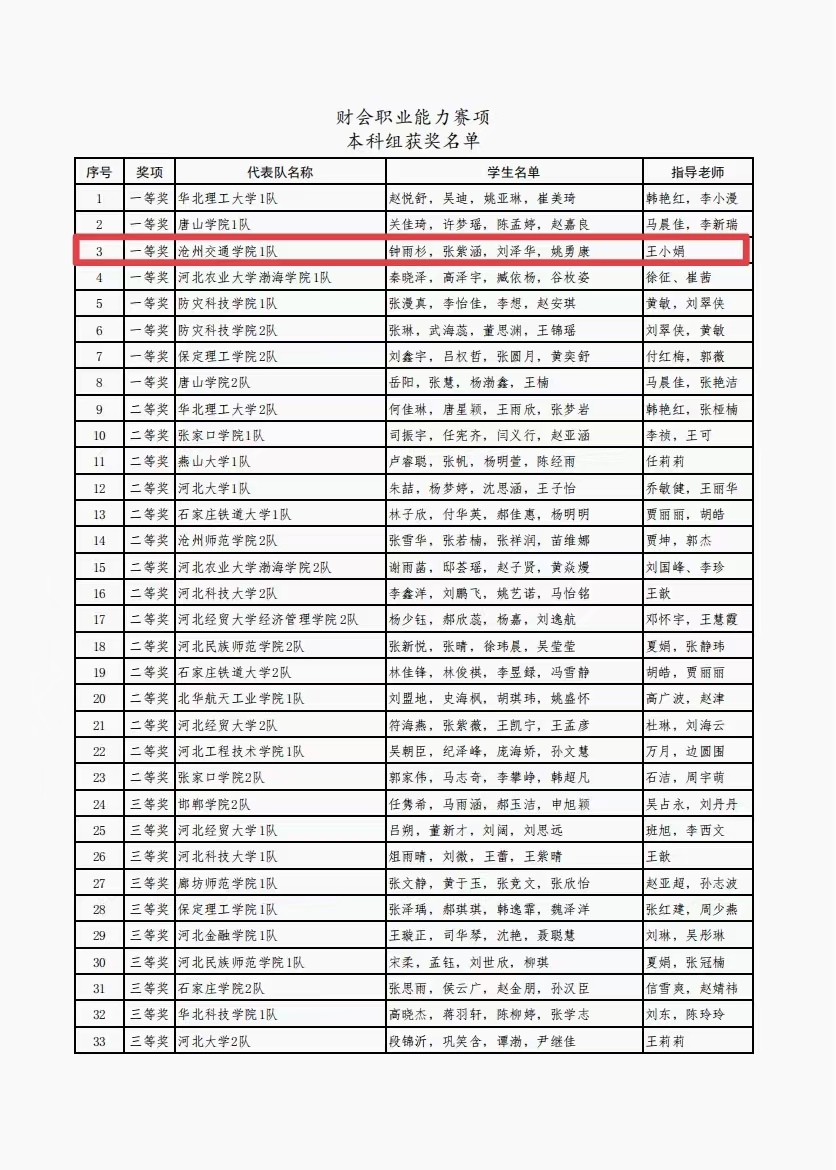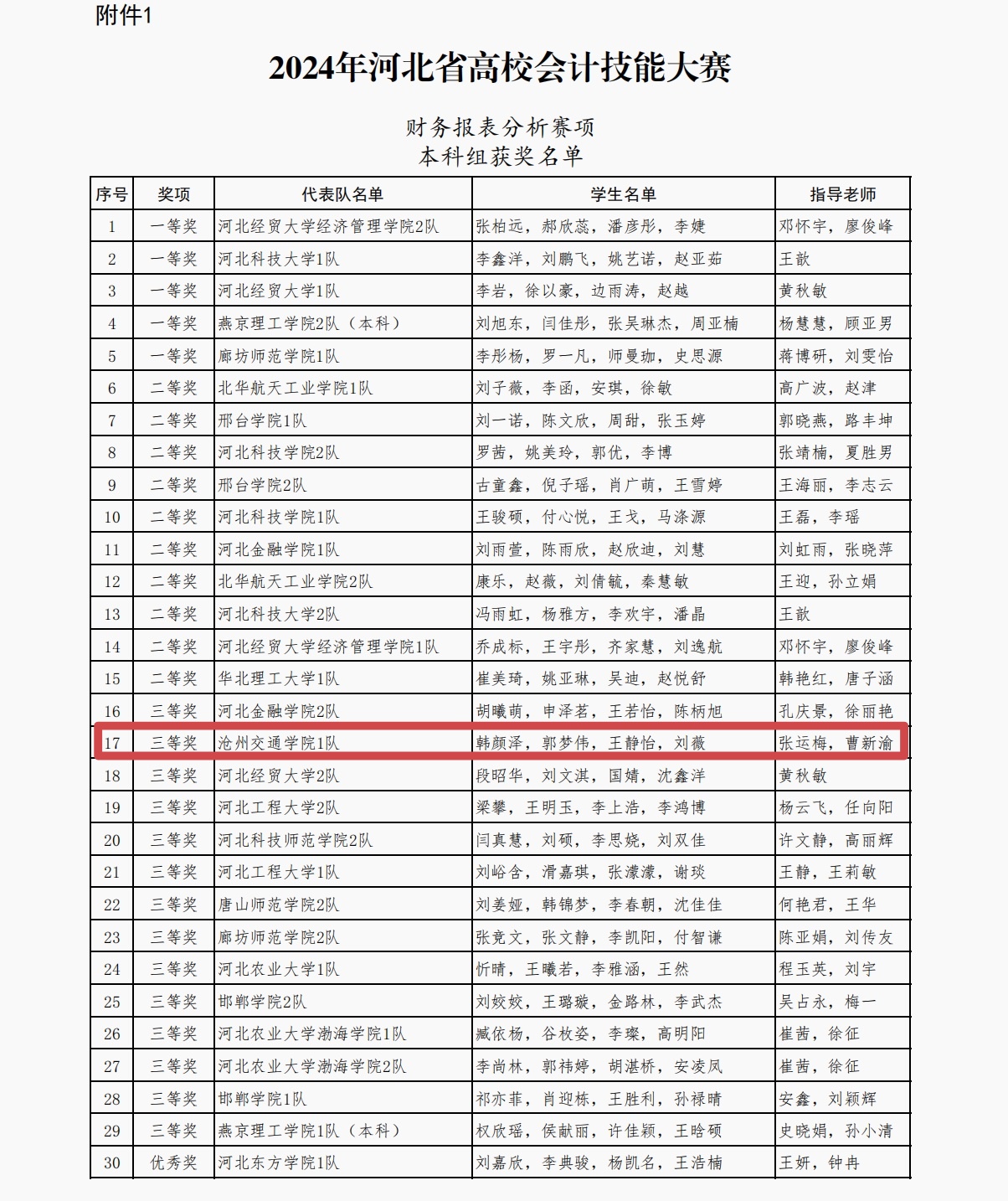 在河北省高校会计技能大赛中,我校经济管理学院的师生依靠扎实的专业知识以及默契的团队协作,在众多参赛队伍中脱颖而出。最终我校在会计技能大赛中荣获多个奖项,这充分展现了我校经济管理学院在教学方面的深厚底蕴和专业素养。