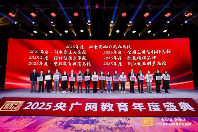 12月26日,以“智启未来 育梦致远”为主题2025央广网教育年度盛典在北京举行。在盛典发布的年度教育荣誉评选中,我校凭借鲜明的办学特色、扎实的育人成果和广泛的社会认可荣膺“社会影响力民办高校”称号。