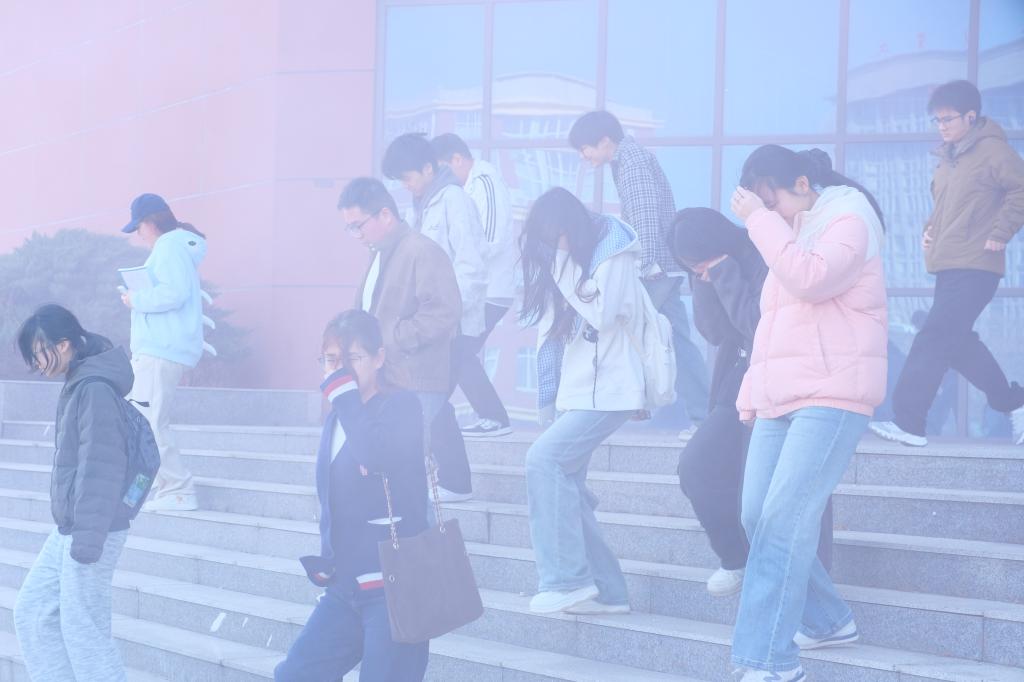 知识培训结束后,消防逃生疏散演练随即展开。随着模拟烟雾扩散和应急警报响起,演练正式启动。参演学生在现场老师及工作人员的有序引导下,严格遵循“弯腰低姿、捂住口鼻、快速有序、不推不挤”的逃生原则,沿着预定疏散路线迅速撤离至校园指定安全区域。整个疏散过程组织严密、衔接顺畅,无拥挤、慌乱等情况发生,仅用数分钟便完成全部人员撤离,有效检验了我校应急预案的可行性和师生们的应急反应能力。