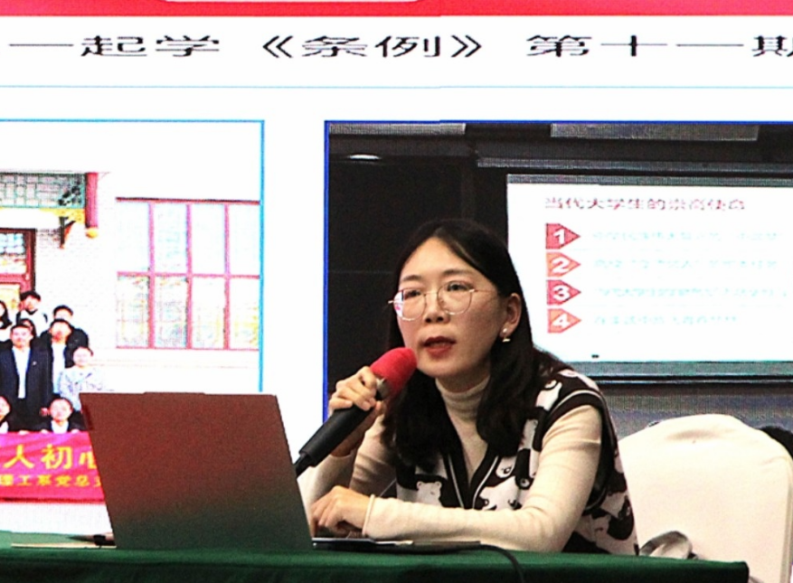 河北农大渤海校区理工系学工办主任胡珊珊则围绕《深耕党团管理十余载 赋能学生成长筑根基》主题,结合一线辅导员实践,展示了如何通过有温度、有深度的党团活动凝聚青年、引领思想,实现成长服务与组织建设协同推进。